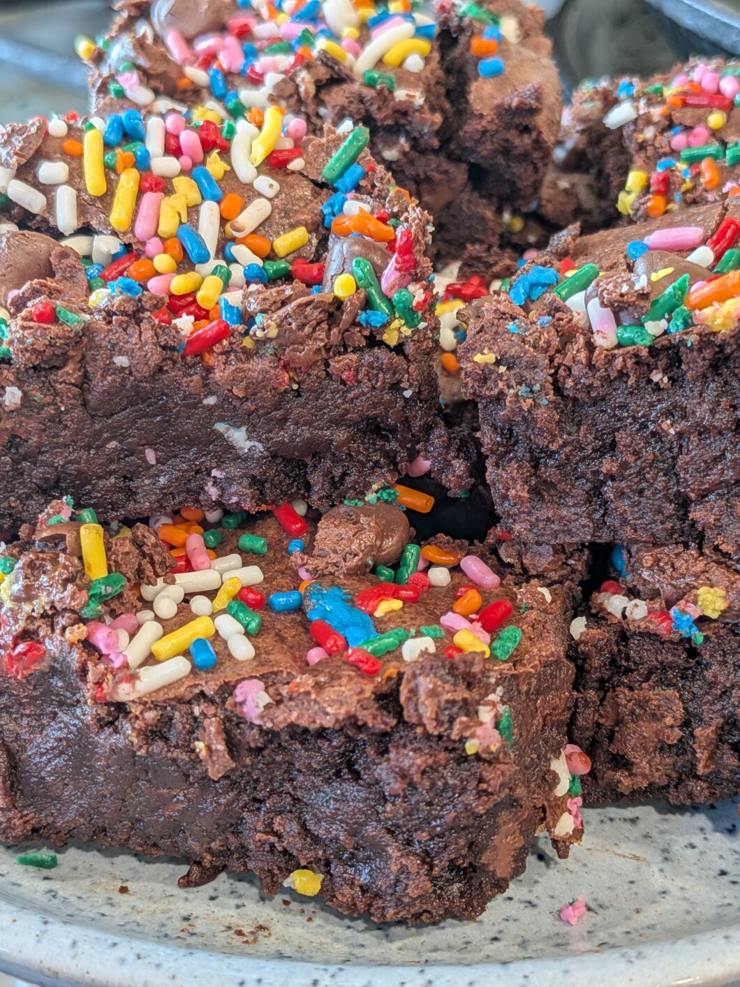 - Top brownies with extra chocolate chips and sprinkles (if desired)