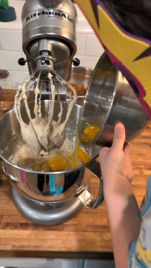 5. Help beat ingredients with stand mixer.
