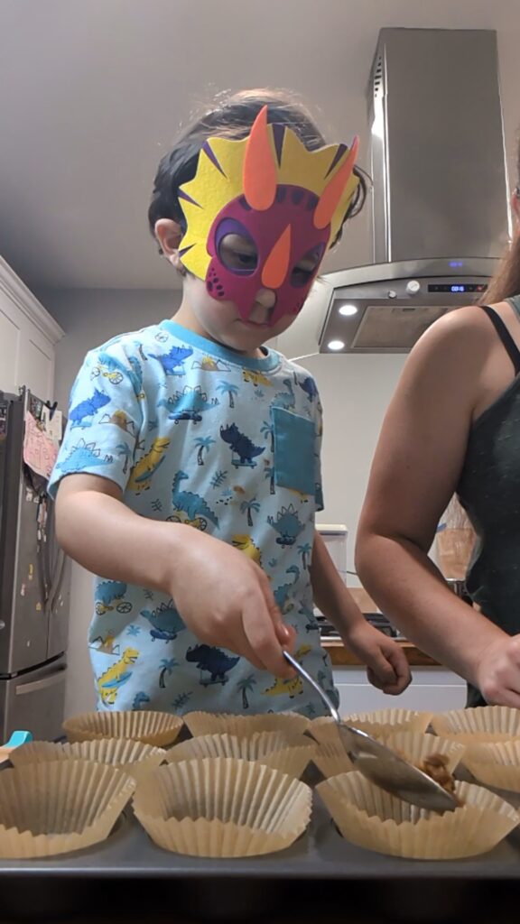 3. Help place cupcake liners in muffin tin.