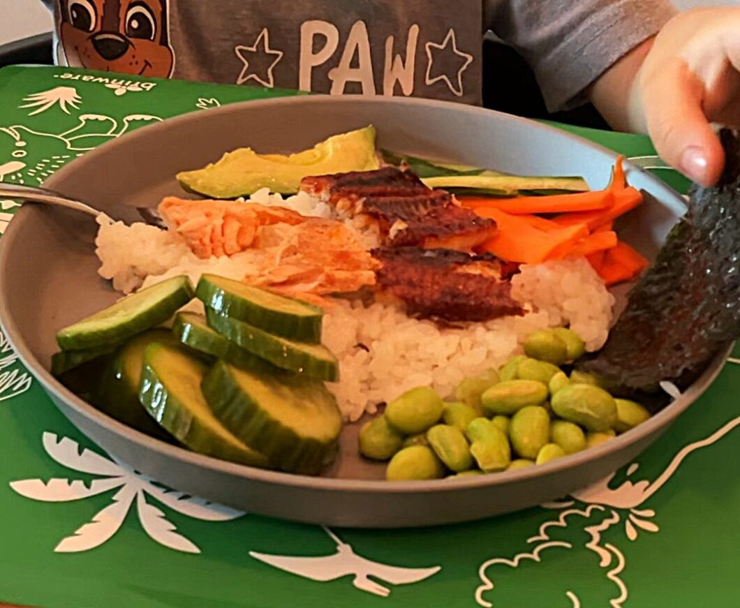 The ingredients listed in this recipe are based upon the sushi bowls my family typically makes but can be easily customized to your family’s tastes.