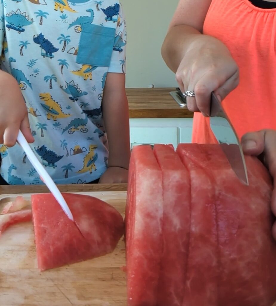 - This rule is a work in progress and our little toddlers will most likely need to be reminded of this rule over and over again, especially if they are excited about whatever it is you are cutting.