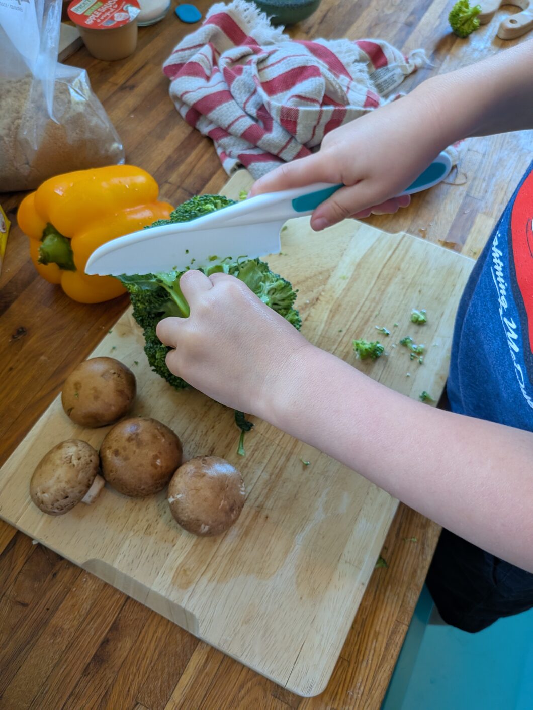 When cooking with your toddler, it’s important to teach knife safety. While toddler knives are considered to be safe as they are designed with toddler safety in mind, It is never too early to start teaching safety skills and can be taught in age appropriate ways.