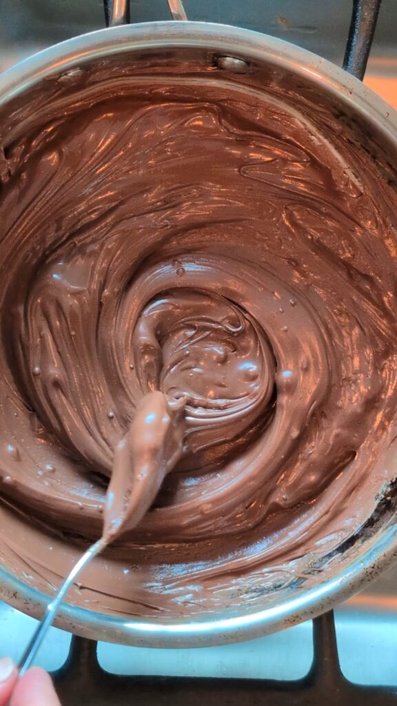 - Melt chocolate chips with coconut oil in a skillet over medium-low heat, stirring frequently to prevent burning.