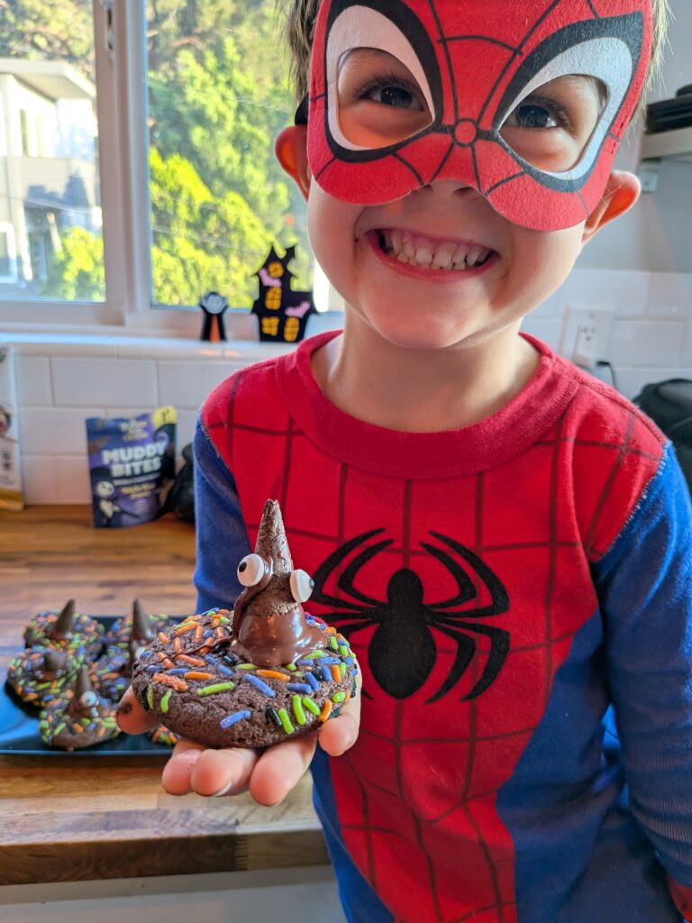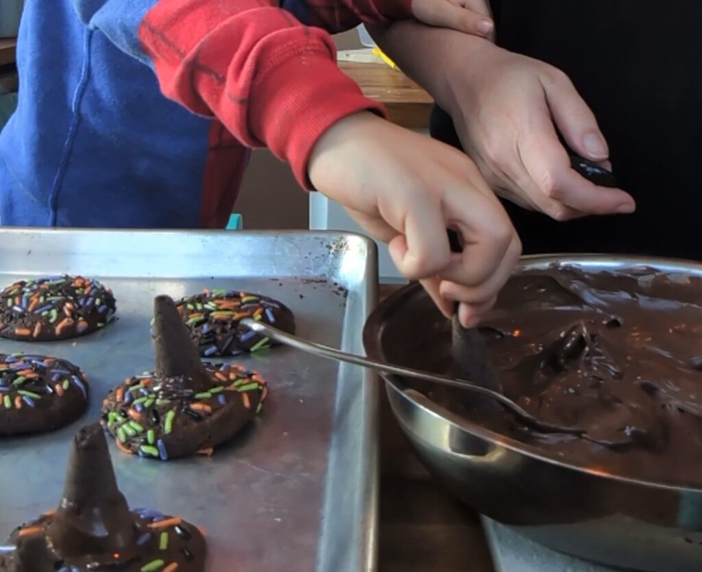 The Cooking With Toddlers recipe, Chocolate Halloween Cookies, makes the perfect cookie base for these Witch Hats.