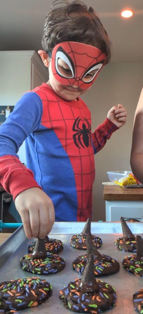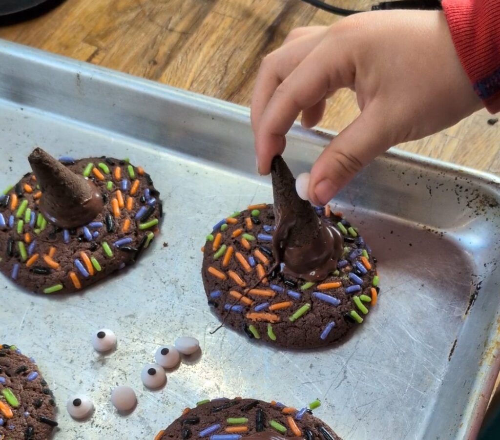 These Witch Hat Cookies are the perfect spook-tacular Halloween cookie that your little toddler chef will have a blast creating. Letting them further decorate with sprinkle eyes lets them get creative and adds to the Halloween magic.