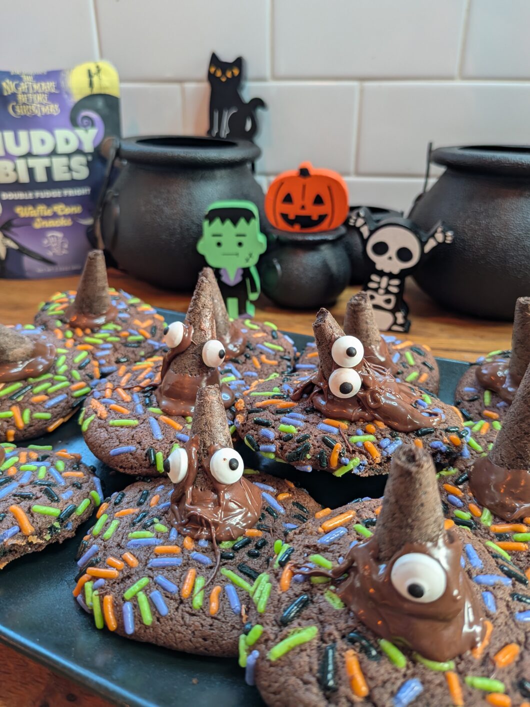 These Witch Hat Cookies are the perfect spook-tacular Halloween cookie that your little toddler chef will have a blast creating. Letting them further decorate with sprinkle eyes lets them get creative and adds to the Halloween magic.